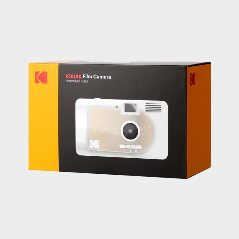 Motorizovaný filmový fotoaparát Kodak S88 je k dispozícii v bielom ľanovom a striebornom puzdre. Tento 35mm fotoaparát na farebný negatívny film od spoločnosti Kodak sa môže pochváliť používateľsky prívetivým dizajnom, ktorý uľahčuje vkladanie filmu. Fotoaparát S88 je vybavený vylepšeným vstavaným bleskom a objektívom s pevným ohniskom a zabezpečuje bezproblémové a efektívne fotografovanie. Kodak S88 vám umožní zachytiť okamihy štýlovo a jednoducho