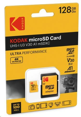 .Kodak paměťová micro SD karta 128GB UHS-II U3 V60 Pro +adapt