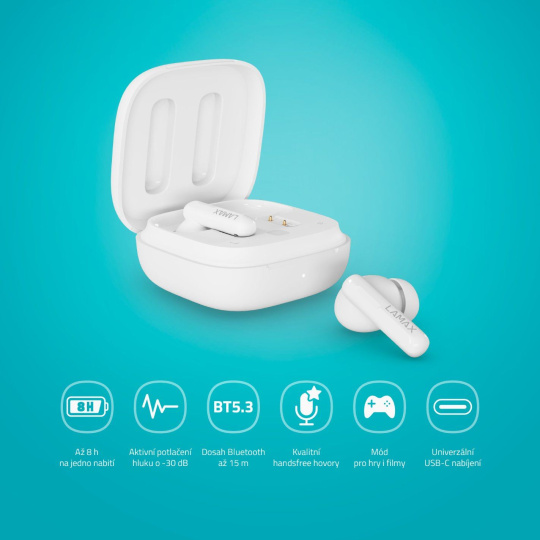 Perfektný zvuk v cool baleníNajlepší zvuk, aký si vieš predstaviť, v úplne top designe a s dlhou výdržou až 8 hodín, tak toto všetko môžeš mať s LAMAX Clips1 Plus. Bezdrôtové špuntové slúchadlá s nožičkou do uší sa automaticky bleskovo spoja cez Bluetooth 5.3 s tvojím telefónom a doprajú ti dokonalý pôžitok, nech už počúvaš čokoľvek. Gamerom určite neunikne Herný mód, ktorý zvýši pôžitok z hry. Dotykom si preskakuješ medzi tracky alebo prijímaš hovory, pri ktorých oceníš kvalitný mikrofón. To najlepšie je ale dokonale čistý a vyrovnaný zvuk, AAC, SBC kodeky, ANC pre potlačenie okolitého hluku a Transparency mode, aby bolo počúvanie perfektné aj bezpečné. Tak cestuj, pracuj alebo športuj štýlovo a v rytme.