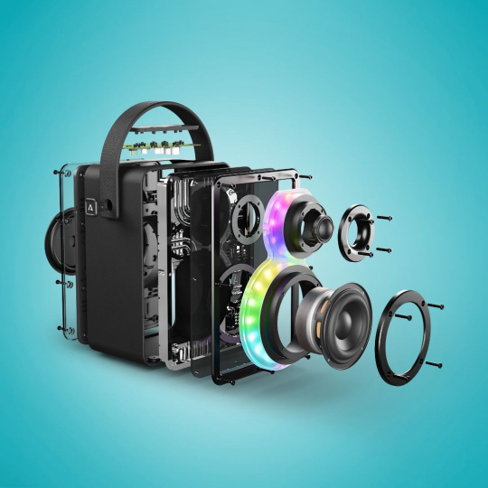 Už prvý dojem z tohto reproduktora je veľkolepý. Luxusné spracovanie, moderný Cyber dizajn, rukoväť na prenášanie a navyše intuitívne ovládanie.