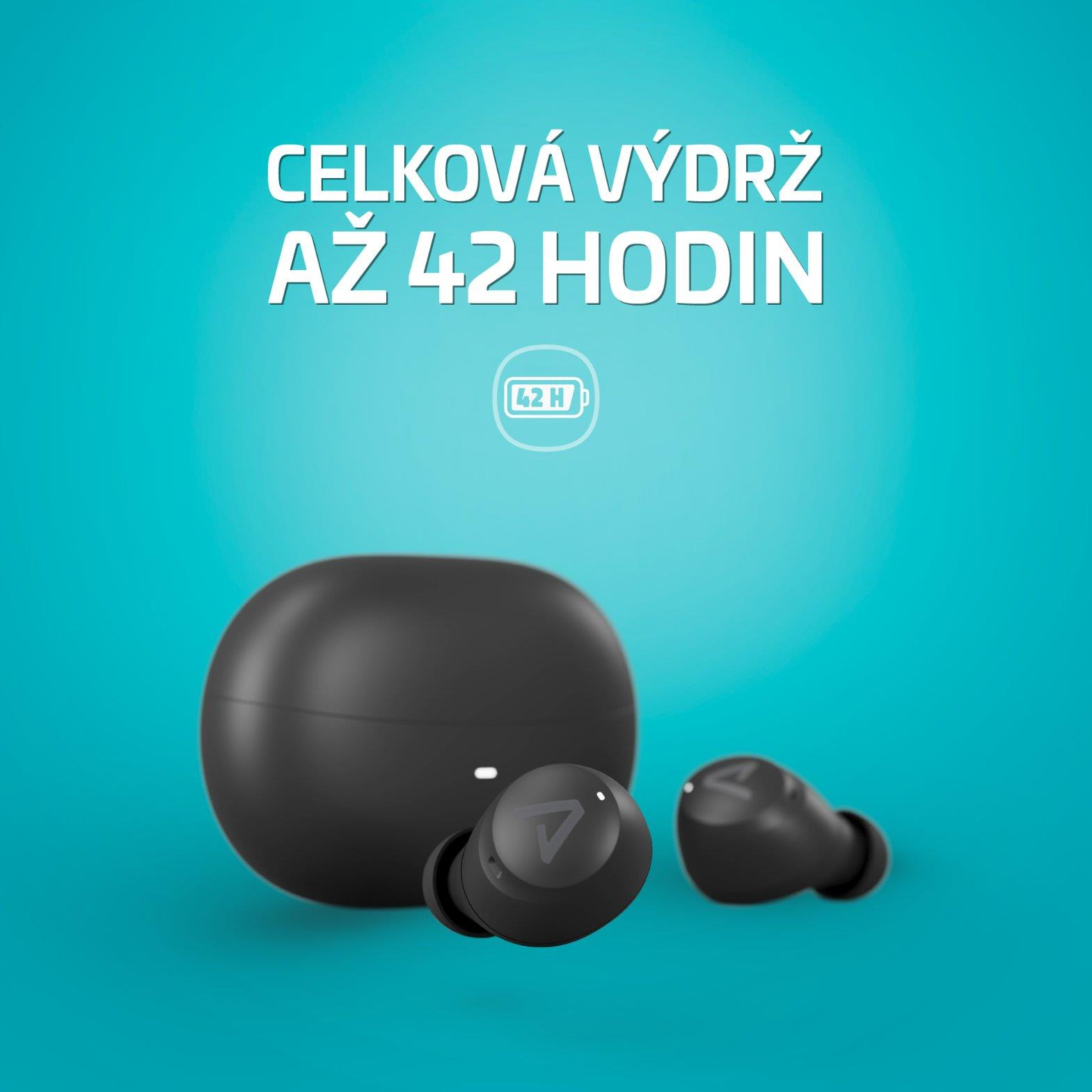 Samotné slúchadlá vydržia na jedno nabitie až 10 hodín, ďalších 32 hodín pridá krabička. Celkovo tak na jedno nabitie získate 42 hodín počúvania. Na takú malú a skladnú škatuľku absolútny nárez!