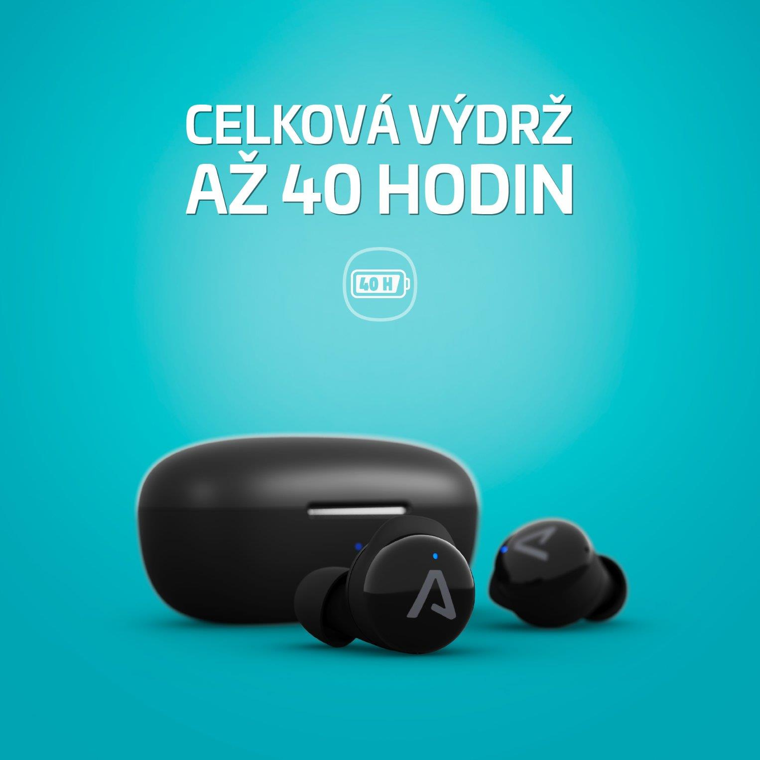 9 hodín na jedno nabitie vám True Wireless slúchadlá veľa nedajú. Využite to a užívajte si nekonečné počúvanie, vybavte všetky hovory alebo počúvajte obľúbené podcasty - vďaka nabíjaciemu puzdru budete mať dostatok energie na nabitý týždeň. Puzdro nabije slúchadlá viac ako 4-krát a celková výdrž batérie je 40 hodín!
