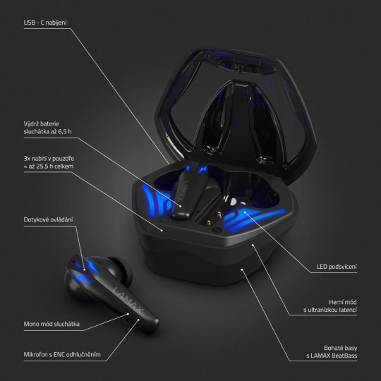 Naša technológia LAMAX BeatBass® ťa vďaka mohutným basom vtiahne naživo do herného sveta. Najmenší detail budeš počuť, ako by sa odohral priamo vedľa teba!