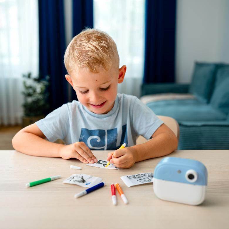 V balení s fotoaparátom LAMAX InstaKid2 Play nájdete aj farebné fixy, vďaka ktorým si deti môžu svoje výtvory dozdobiť podľa vlastnej fantázie a každá snímka sa tak stáva osobitým dielom. A keď si malí tvorcovia potrebujú od fotenia na chvíľu oddýchnuť, čaká ich zábava v podobe piatich jednoduchých hier priamo vo fotoaparáte. Či už sa hrajú na malého fotografa alebo začínajúceho režiséra, možnosti zábavy s týmto prístrojom neberú konca.