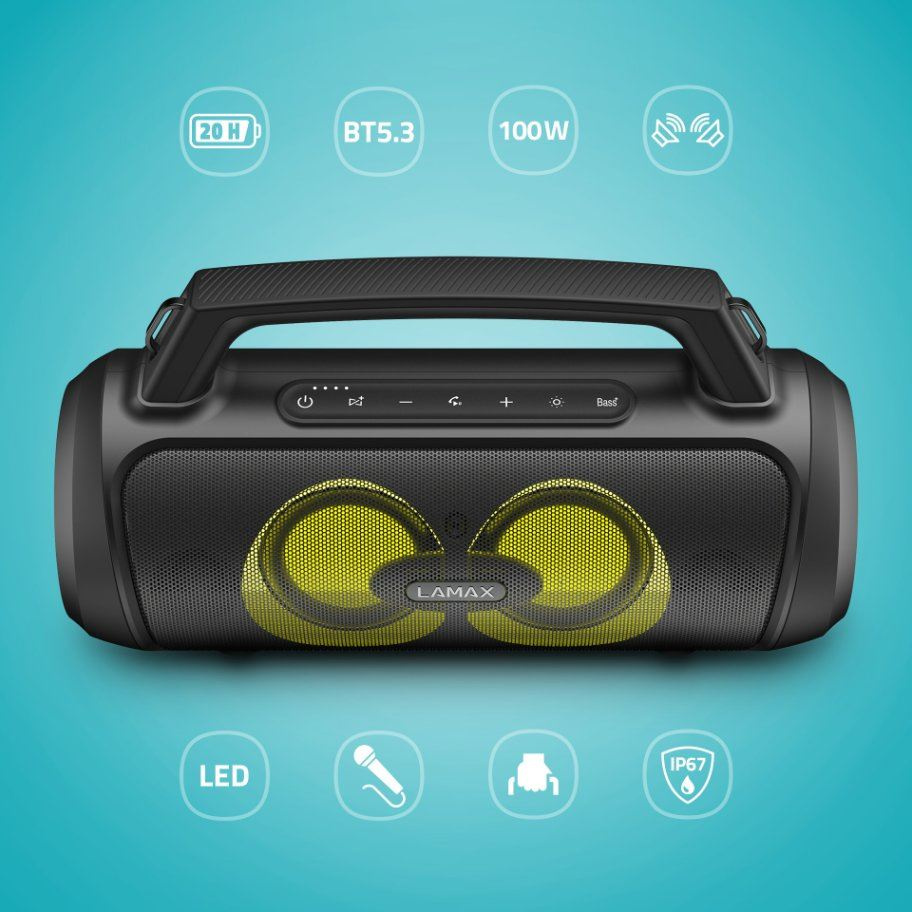 Malé telo s veľkým výkonomRozbehni kdekoľvek aj neplánovanú párty vo veľkom štýle. Prenosný párty reproduktor LAMAX PartyGo1 je vzhľadom malý, ale ukrýva v sebe veľkú silu, výkon 100 W. Technológia BeatBass® mu dáva silný, plný a bohatý zvuk. Grilovačku, narodeninovú oslavu alebo menšie párty oživia 3 režimy LED podsvietenia a možnosť pripojenia mikrofónu, keď si chceš užiť karaoke alebo akciu moderovať. Reprak sa automaticky spáruje s akýmkoľvek zariadením prostredníctvom Bluetooth 5.3, ktorý poskytuje bezchybný prenos až na 18 m. Na pohodu s tebou bude nový parťák aj cestovať, batéria mu vydrží až 20 hodín a má navyše šikovné madlo alebo popruh cez rameno. Pripojíš ho ako cez BT, tak USB, microSD, prípadne AUX a vie sa premeniť aj v powerbanku cez USB-A vstup. A keď jeden reprák nestačí, môžeš ho spárovať s druhým.
