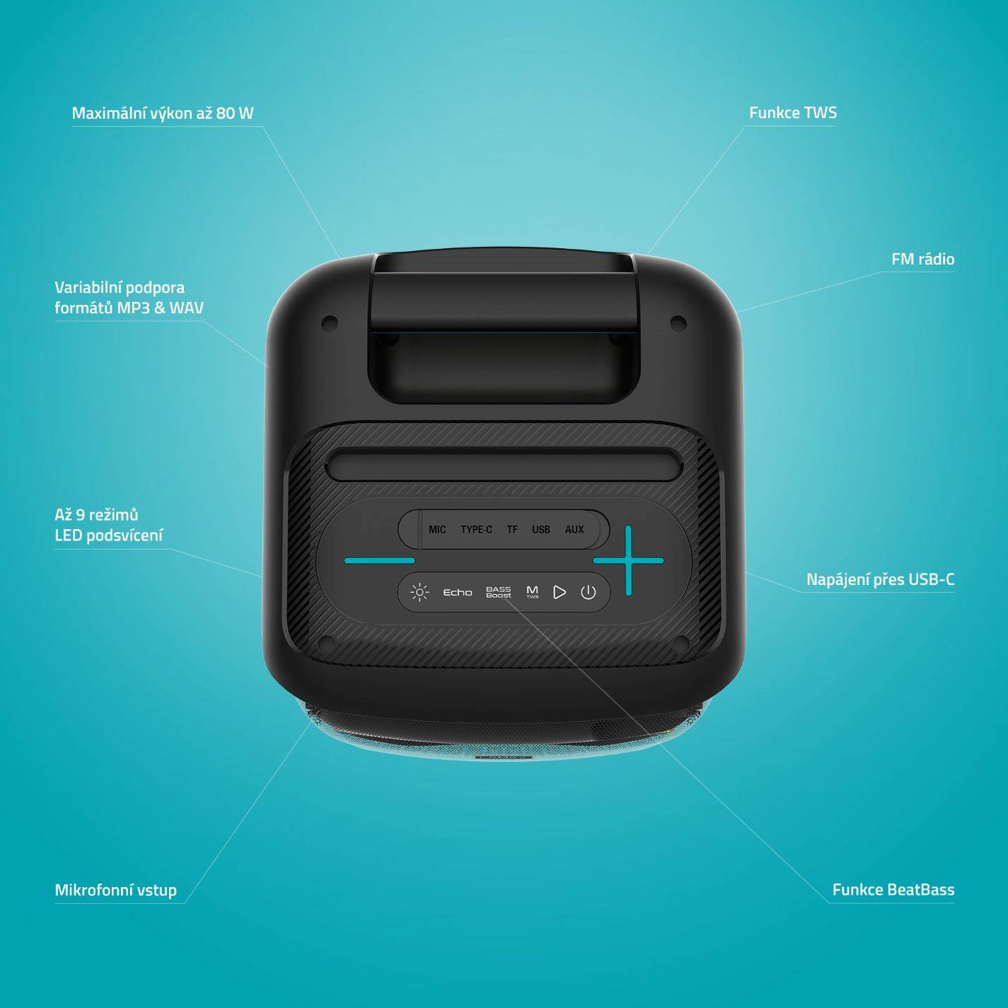 Reprák má pribalený bezdrôtový mikrofón, takže akciu môžeš odmoderovať alebo rozbehnúť skvelý karaoke.
