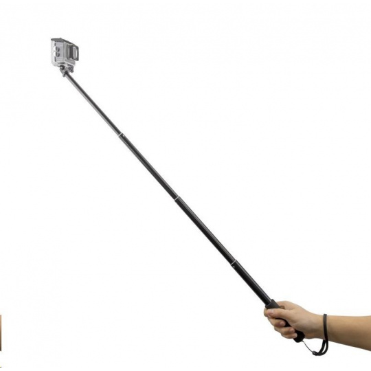 Držiak je vybavený rukoväťou s pohodlným gumovým protišmykovým povrchom, s pútkom a statívovým závitom na spodnom konci, aby ste mohli monopod pripojiť k ďalšiemu príslušenstvu. Na hornom konci tyče je adaptér na jednoduché pripojenie akčnej kamery akejkoľvek značky.