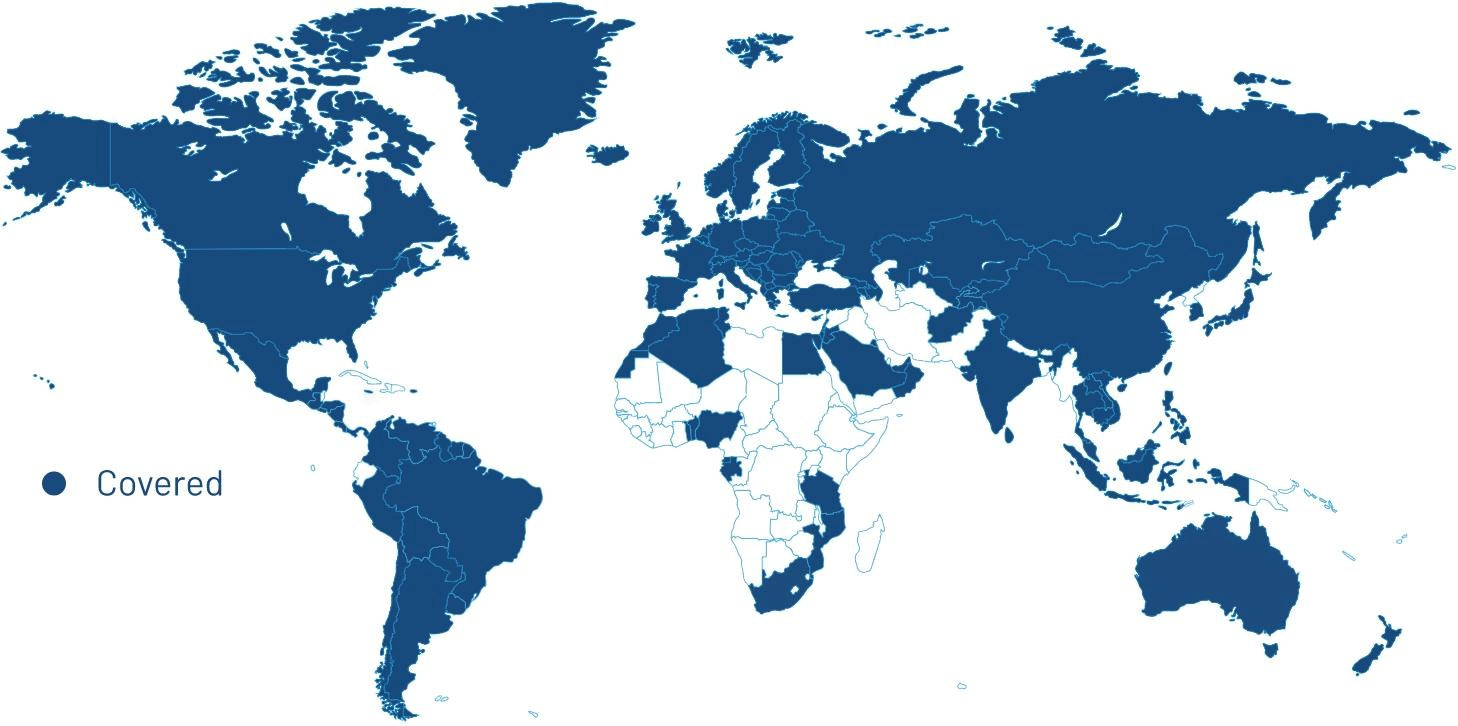 Afganistan, Albánsko, Alžírsko, Andorra, Anguilla, Antigua a Barbuda, Argentína, Arménsko, Aruba, Austrália, Rakúsko, Azerbajdžan, Bahrajn, Barbados, Bielorusko, Belgicko, Benin, Bolívia, Bonaire (Holandské Antily), Bosna a Hercegovina, Brazília, Britské Panenské ostrovy, Bulharsko, Cabo Verde, Kambodža, Kanada, Cayman, Čile, Čína, Kolumbia, Chorvátsko, Kostarika, Kuba, Curacao (Holandské Antily), Cyprus, Česká republika, Dánsko, Dominika, Egypt, El Salvador, rovníková Guinea, Estónsko, Faerské ostrovy, Fínsko, Francúzsko, Francúzska Guiana, Gabun, Nemecko, Gruzínsko, Gibraltár, Veľká Británia, Grécko, Grónsko, Grenada, Guadeloupe (Francúzske Antily), Guatemale, Guernsey, Guyana, Honduras, Hong Kong, Maďarsko, Island, India, Indonézia, Írsko, ostrov Man, Izrael, Taliansko, Jamajka, Japonsko, Jersey, Jordan, Kazachstan, Kórea, Republika, Kosovo, Kuvajt, Kirgizsko, La Désirade (Francúzske Antily), Laos, Lotyšsko, Libanon, Les Saintes (Francúzske Antily), Lichtenštajnsko, Litva, Luxembursko, Malajzia, Malta, Marie Galante (Francúzske Antily), Martinik (Francúzske Antily), Maurícius, Mayotte, Mexiko, Moldavsko, Monako, Mongolsko, Čierna Hora, Montserrat, Maroko, Mozambik, Holandsko, Nová Kaledónia, Nový Zéland, Nikaragua, Nigéria, Severné Macedónsko, Nórsko, Omán, sultanát, Palau, Palestíne, Panama, Paraguaj, Peru, Filipíny, Poľsko, Portugalsko, Portoriko, Katar, Réunion, Rumunsko, Rusko, Svätý Bartolomej, Svätý Krištof a Nevis, Svätá Lucia, Svätý Martin (francúzska časť), Svätý Vincent a Grenadíny, Saudská Arábia, Senegal, Srbsko, Sint Maarten (Holandské Antily), Singapur, Slovenská Republika, Slovinsko, Južná Afrika, Španielsko, Srí Lanka, Surinam, Švédsko, Švajčiarsko, Tahiti (Francúzska Polynézia), Tadžikistan, Taiwan, Tanzánia, Thajsko, Togo, Trinidad a Tobago, Tunisko, Turecko, Ostrovy Turks a Caicos, Ukrajina, Spojené Arabské Emiráty, Uruguaj, USA, Americké Panenské ostrovy, Uzbekistan, Venezuela, Vietnam