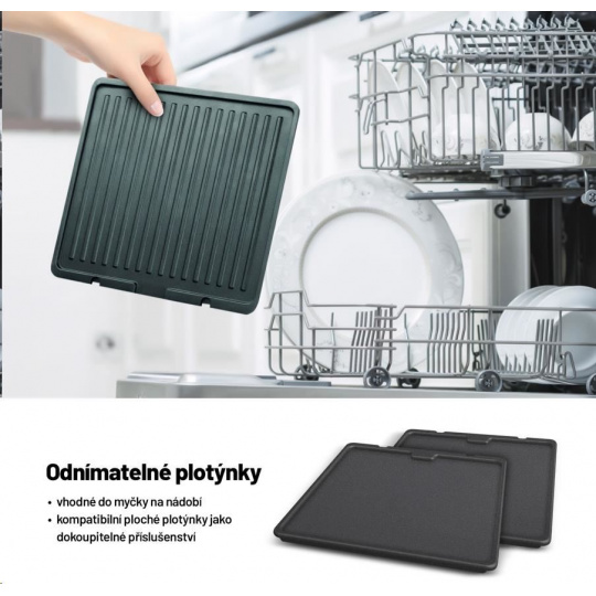 Obe grilovacie platničky sú odnímateľné a vhodné do umývačky riadu.
