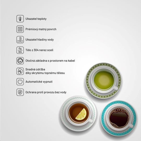 Vykurovacie teleso kanvice je skryté, menej sa zanáša a vodný kameň takmer nemá šancu.