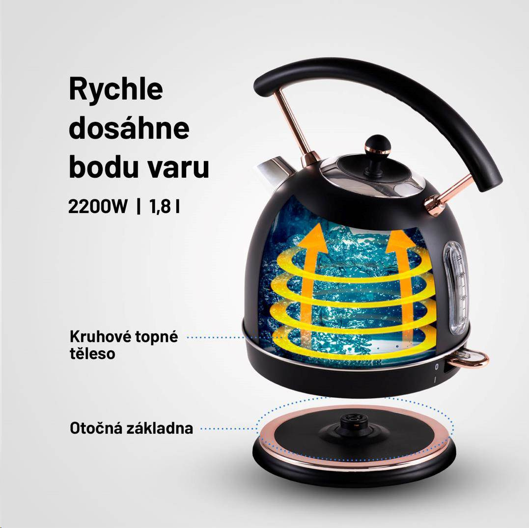 Vykurovacie teleso kanvice je skryté, menej sa zanáša a vodný kameň takmer nemá šancu.