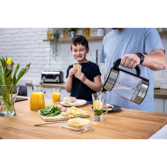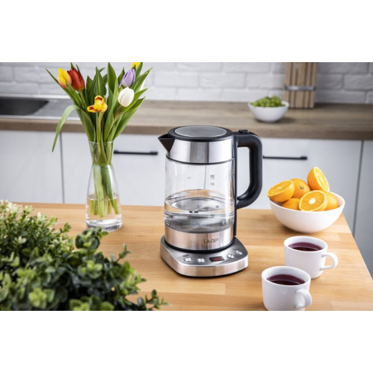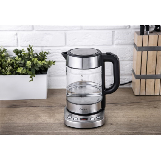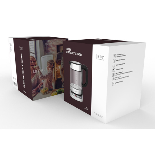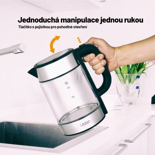 Teplotu volíte v rozmedzí 60-100 °C po desiatich stupňových intervaloch. V konvici Lauben ohrejete až 1,7 l vody naraz. Jej aktuálne množstvo vždy poznáte vďaka stupnici na skle. Veko konvice je vybavené bezpečnostnou poistkou proti rozliatiu a otvárate ho jednoducho, pomocou tlačidla umiestneného na držadle.
