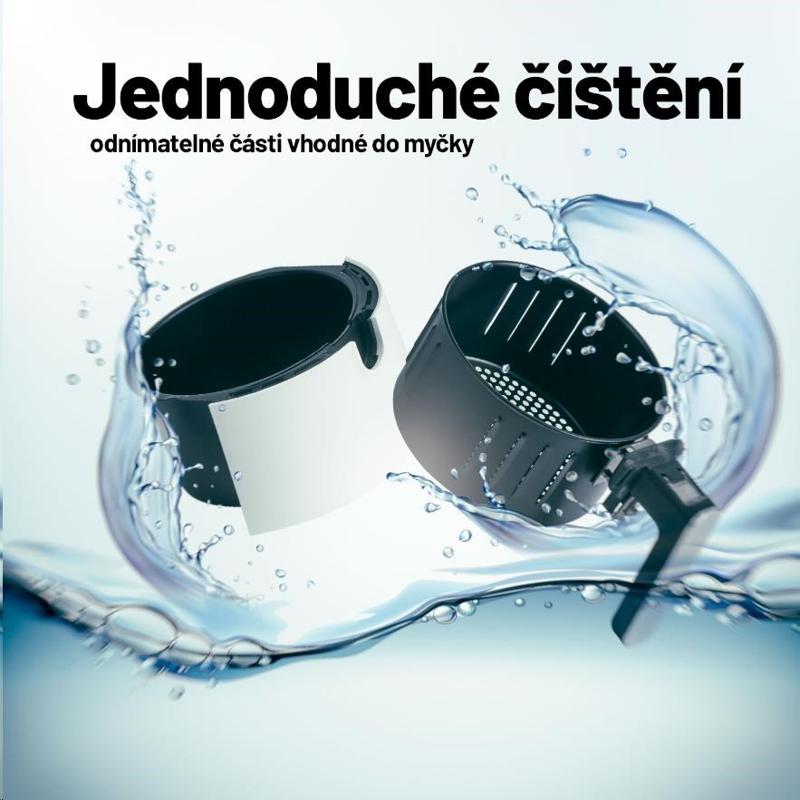 Fritéza sa veľmi ľahko ovláda vďaka prehľadnému dotykovému displeju a hlavná časť je možné umývať v umývačke riadu. Vyčarí vám aj vkusný minimalistický dizajn.