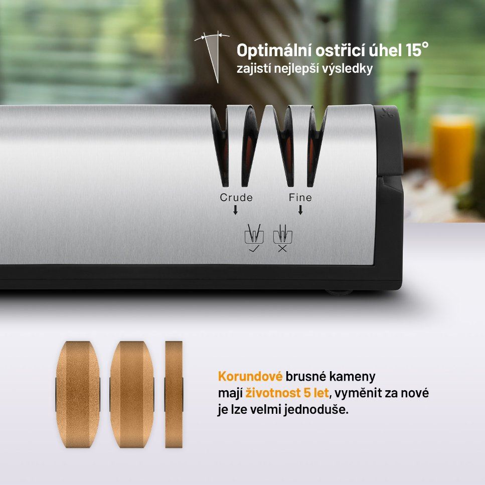 Bruska na nože Lauben Nôž na ostrenie 4700SB je dodávaná v nerezovom prevedení, vďaka čomu naozaj niečo vydrží, ostrie bude vždy dokonalé vďaka použitiu korundu. Vymeniteľná náplň zaručuje, že brúsku bude slúžiť dlhé roky. Brúsne kamene navyše majú veľmi dlhú životnosť – približne päť rokov.