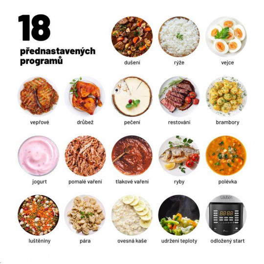 Vďaka 18 programom a manuálnemu nastaveniu času Lauben Multi Cooker s prehľadom nahradí celý arzenál kuchynských spotrebičov.