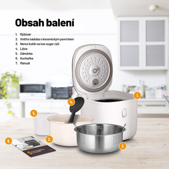 Okrem toho, že stlačením jediného tlačidla pripravíte dokonale všetky druhy ryže, využijete ryžovar aj pre ďalšie jedlá. 6 šikovných prednastavených funkcií - Slow cook, Quick cook, Polievka, Kaša, Low Sugar ryža, Zelenina - si poradí aj s prípravou strukovín či ovsených kaší. Ak by vám nastavené hodnoty nevyhovovali, čas aj funkciu upravíte manuálne. Niekedy je potrebné jedlo udržiavať teplé, čo zvládne funkcia Keep Warm. Pre počiatočnú inšpiráciu sme k ryžovaru priložili kuchárku, ktorá obsahuje 5 zdravých a jednoduchých receptov.