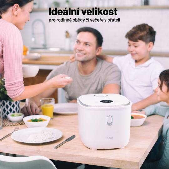 Designovo vyladený Lauben Low Sugar Rice Cooker 3000WT predstavuje ideálne riešenie pre veľkú rodinu. Jedlá pripravíte s minimom tuku a nepopália sa. Jeho 3l nádoba s prémiovým neprilnavým keramickým povrchom sa ľahko udržiava, stačí ju vložiť do umývačky. Ovládanie ryžovaru je veľmi jednoduché prostredníctvom digitálneho dotykového displeja. Pre zabezpečenie bezpečnosti je prístroj vybavený ochranou proti pretečeniu vďaka mikrospínaču a technológiou Cool Touch, ktorá zabezpečuje, že sa nikto nepopáli o vonkajší plášť.