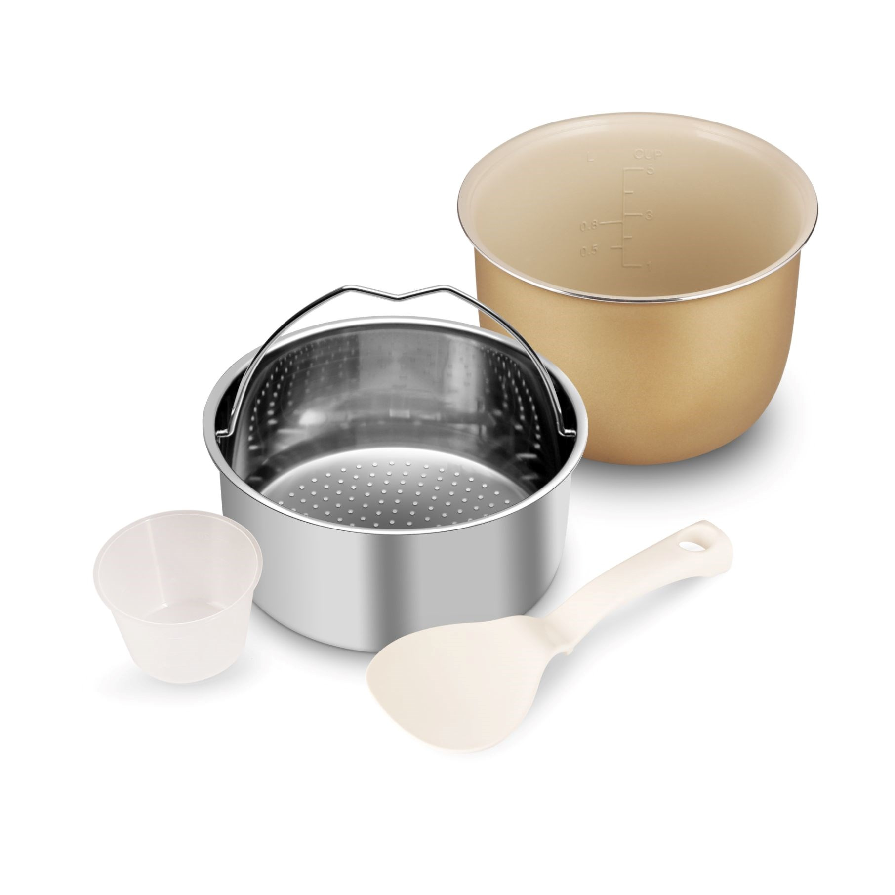 Ovládanie viacúčelového rýžovaru zvládne úplne každý pomocou prehľadného dotykového displeja, kde stlačením tlačidla aktivujete zvolenú funkciu alebo si manuálne nastavíte hodnoty podľa potreby. Manipuláciu s rýžovarom uľahčuje praktické madlo. Vo 2l hrnci s nepremastiteľným povrchom pohodlne pripravíte jedlo pre celú rodinu či spoločenskú akciu. Stačí ho potom vybrať a vložiť do umývačky, žiadne zložité drhnutie. Súčasťou balenia je tiež praktická odmerka a lyžica na ryžu.