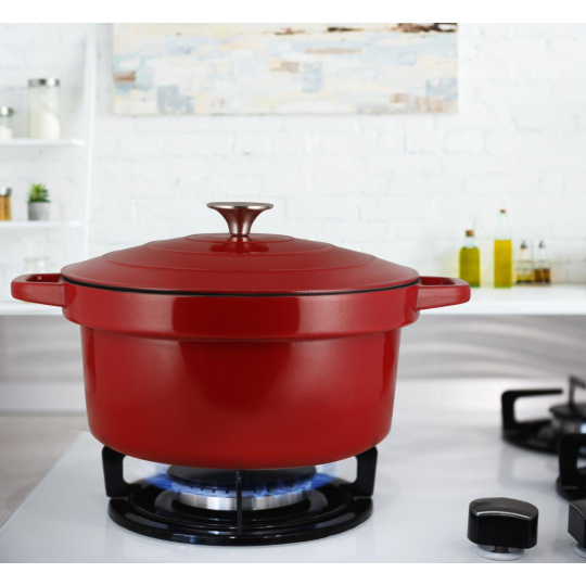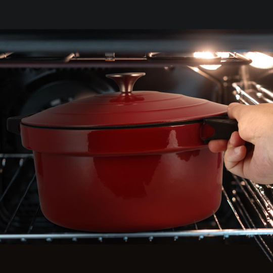 Súčasťou elektrického multicookera je OvenSafe® liatinový smaltovaný vnútorný hrniec, ktorý odoláva teplotám až 250°C a hodí sa aj pre použitie v rúre či na rôznych typoch sporákov. Liatina oplýva schopnosťou absorbovať teplo a odovzdávať ho surovinám vo vnútri, ktoré sa tak pripravujú pri konštantnej teplote. Dochádza k úspore energie a tým aj peňazí. Šťavnatosť a chrumkavosť jedlám zaisťuje špeciálna pokrievka, ktorá je navrhnutá tak, aby dochádzalo k rovnomernej distribúcii vlhkosti vo vnútri hrnca.