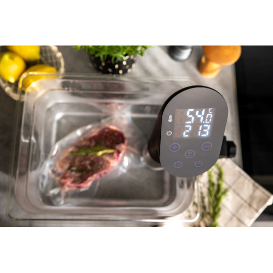 Chcete si vychutnať vynikajúce, zdravé jedlo, ktorého príprava vám nezaberie celý popoludnie? Chcete si doma pripraviť mäso, čo sa bude rozpadávať na jazyku, ale pritom nezničí objem a vždy si zachová svoj tvar a farbu? Nemusíte nutne chodiť do reštaurácie. Lauben Smart Sous Vide je ideálnym pomocníkom do kuchyne pre každého, kto chce ušetriť hodiny strávené pri sporáku, a predsa získať z ingrediencií maximum. Vďaka metóde varenia sous vide si pripravené jedlá zachovajú všetky chute, vône a živiny, o ktoré nechcete pri varení prísť. Varič jednoducho zapnete a ponoríte do hrnca s potravinami pripravenými vo špeciálnych zip lock vakoch, ktoré sú súčasťou balenia. O ostatné sa postará Lauben Smart Sous Vide, vy si len vychutnáte famózny výsledok.
