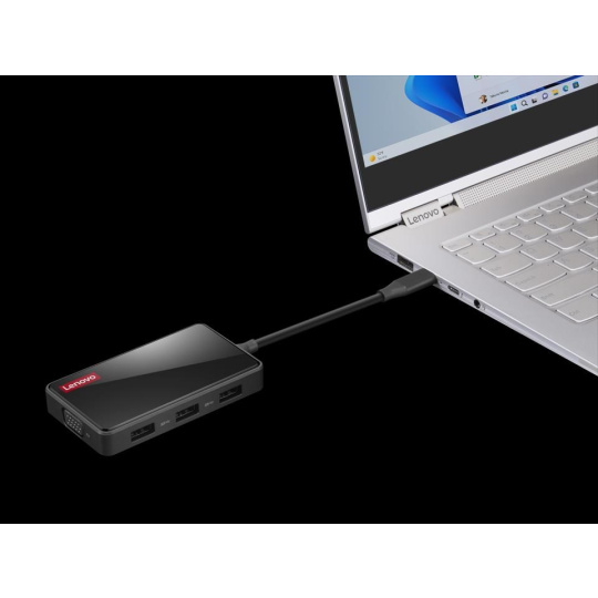pripojenie cez USB-C, VGA, HDMI, USB-C, USB-A, gigabit ethernet, čítačka pam.kariet, pripojenie max. dvoch monitorov , 4K, power delivery 100W, materiál plast