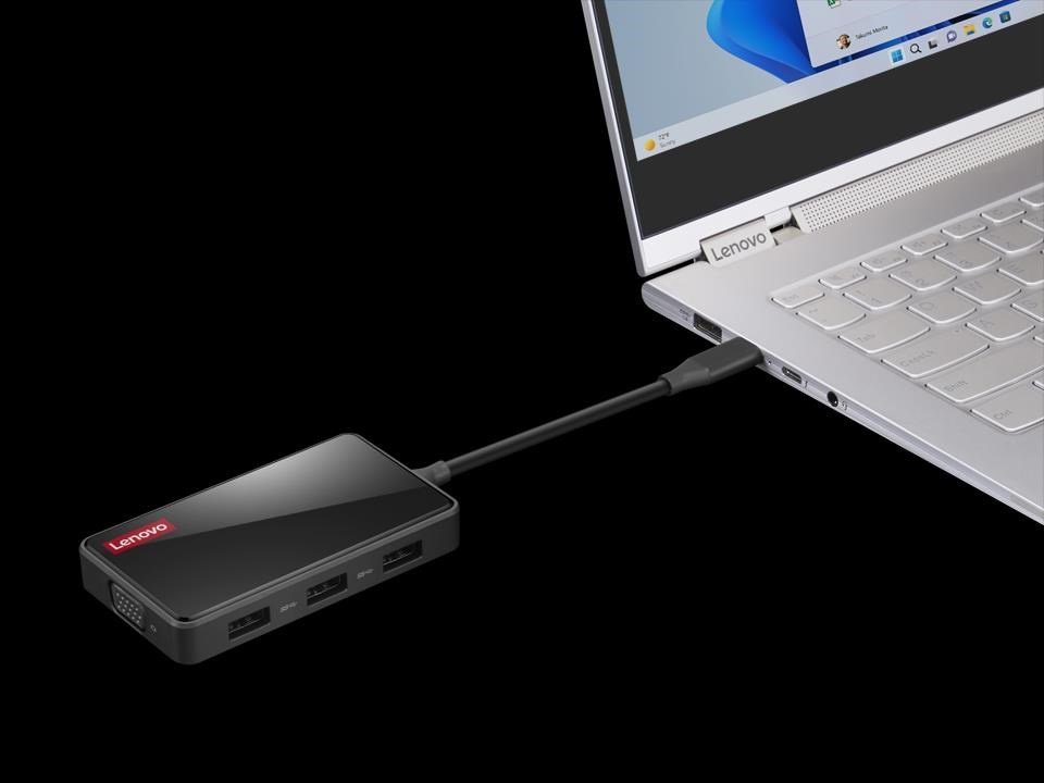 pripojenie cez USB-C, VGA, HDMI, USB-C, USB-A, gigabit ethernet, čítačka pam.kariet, pripojenie max. dvoch monitorov , 4K, power delivery 100W, materiál plast