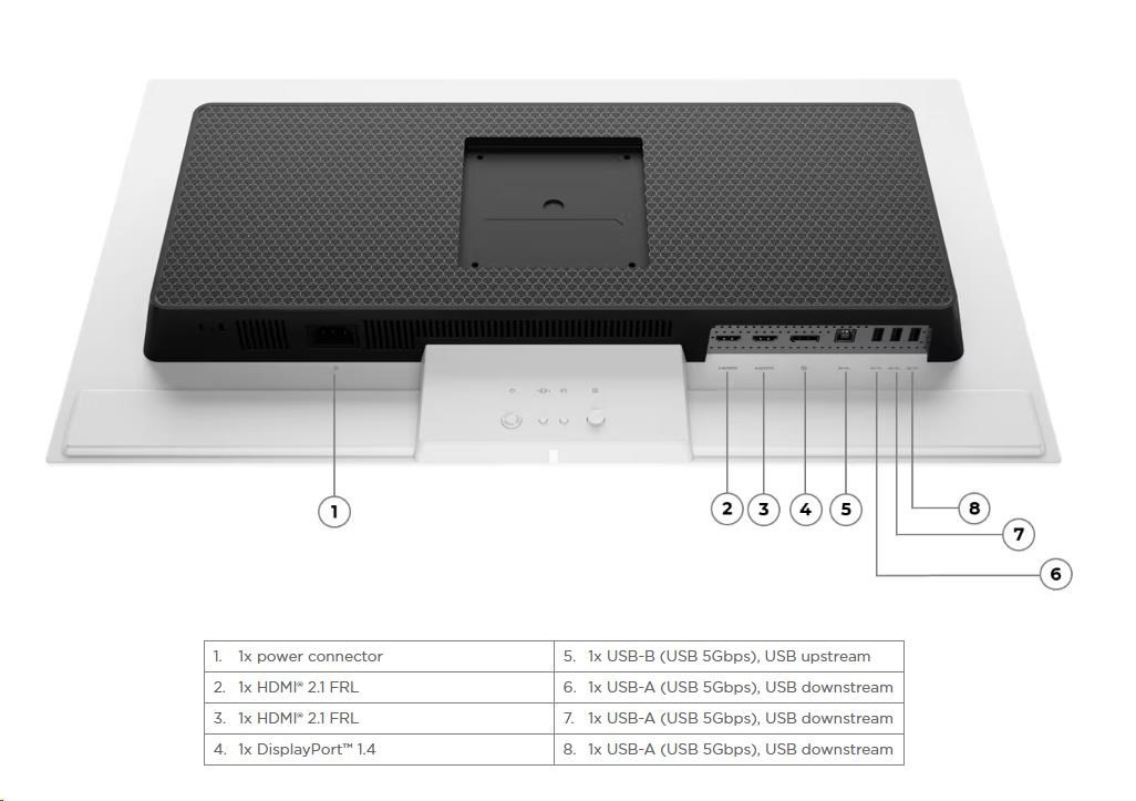 | USB porty | 1 x USB-B (USB 5Gbps / USB 3.2 Gen 1, USB Upstream), 3 x USB-A (USB 5Gbps / USB 3.2 Gen 1 USB Downstream) |