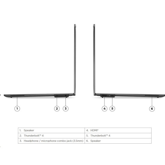 | Standartné porty | 2x USB-C® (Thunderbolt™ 4 / USB4® 40Gbps), with USB PD 3.0 and DisplayPort™ 2.1 1x HDMI® 2.1, up to 4K/60Hz 1x Headphone / microphone combo jack (3.5mm) |