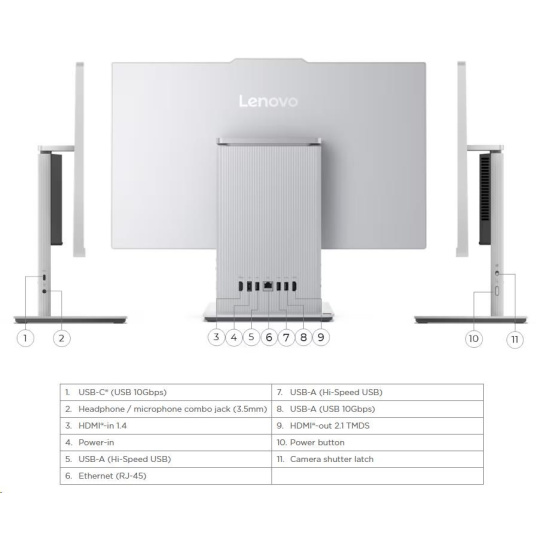 | Standartné porty | 1x USB-A (USB 10Gbps / USB 3.2 Gen 2) 2x USB-A (Hi-Speed USB / USB 2.0) 1x HDMI®-in 1.4 1x HDMI®-out 2.1 TMDS 1x Ethernet (RJ-45) 1x power connector 1x USB-C® (USB 10Gbps / USB 3.2 Gen 2), data transfer only 1x headphone / microphone combo jack (3.5mm) | |