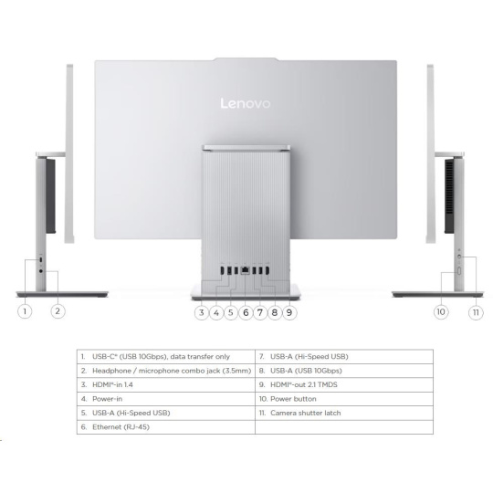 | Standartné porty | 1x USB-A (USB 10Gbps / USB 3.2 Gen 2) 2x USB-A (Hi-Speed USB / USB 2.0) 1x HDMI®-in 1.4 1x HDMI®-out 2.1 TMDS 1x Ethernet (RJ-45) 1x power connector |
