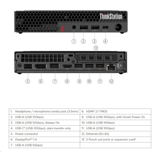 | Predné porty | 1x USB-C® (USB 20Gbps / USB 3.2 Gen 2x2), data transfer only 1x USB-A (USB 10Gbps / USB 3.2 Gen 2), Always On 1x USB-A (USB 10Gbps / USB 3.2 Gen 2) 1x headphone / microphone combo jack (3.5mm) |