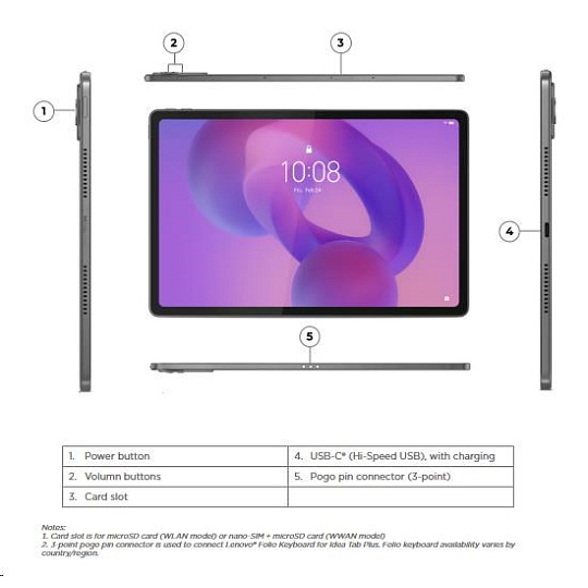 | Standartné porty | 1x USB-C® (Hi-Speed USB / USB 2.0), with charging 1x Card slot 1x Pogo pin connector (3-point) |