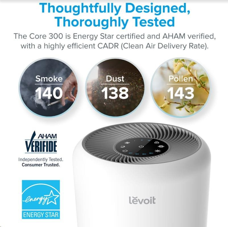Čistička vzduchu Levoit CORE300S sa pýši ocenením ENERGY STAR. Pre získanie tohto certifikátu musia byť splnené príslušné podmienky energetickej náročnosti a úsporz energie. Vďaka tomu môžete mať čističky Levoit v prevádzke 24/7 a na účte ya energie si to ani nevšimnete.