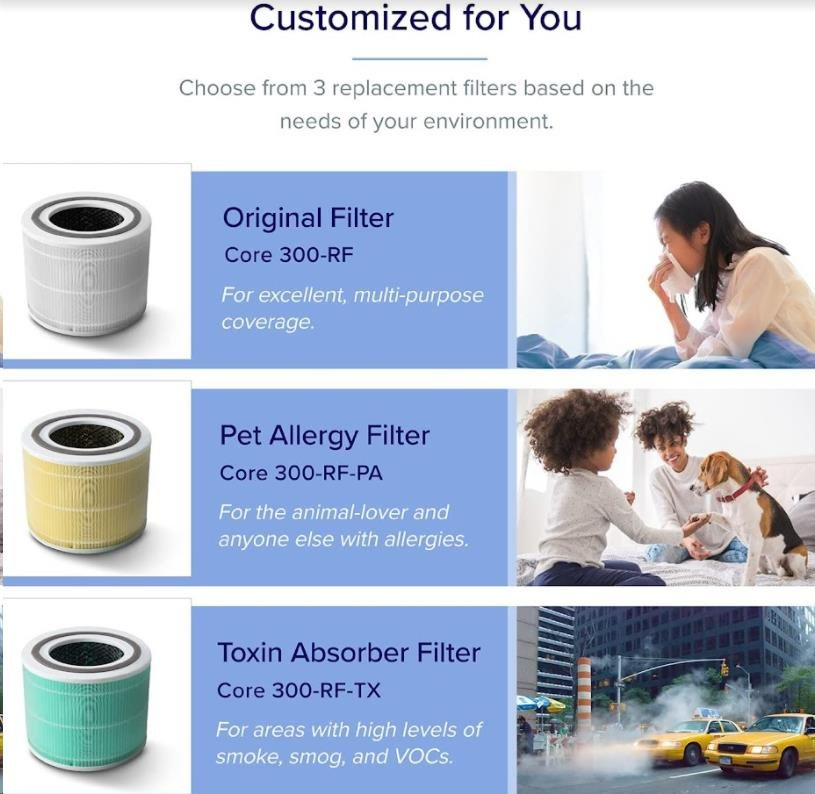 Chcete mať doma čistý vzduch ako prevenciu pred ochorením horných dýchacích ciest alebo ste alergik či astmatik? Čistička vzduchu Levoit CORE 300-RAC vďaka vysoko kvalitnej 3 vrstvovej filtrácii s filtrom HEPA H13 a maximálnu cirkuláciu vzduchu patentovanej technológie VortexairTM odstráni až 99,97% škodlivých látok a nečistôt, ktoré by ste inak dýchali. Ovládanie čističky vzduchu je skutočne jednoduché. V noci oceníte nočný režim podporený technológiou QuietKEAPTM, vďaka ktorej prevádzka produkuje hluk iba 24B a váš spánok tak nebude rušený.