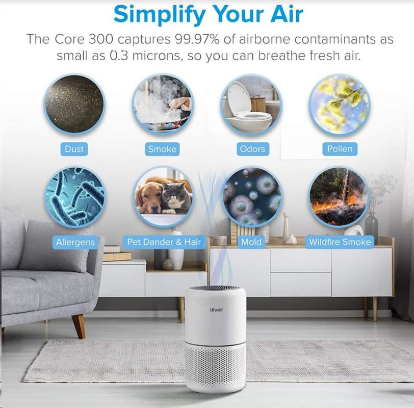 Posledný, vysoko efektívny karbónový filter potom už len odfiltruje dym, pachy, výpary a iné najmenšie častice. Celkovo čistička Levoit CORE 300 zachytí až 99,97% všetkých nečistôt, a to až do miniatúrnej veľkosti 0,3 mikrónov. Vám zostane iba čerstvý a čistý vzduch.