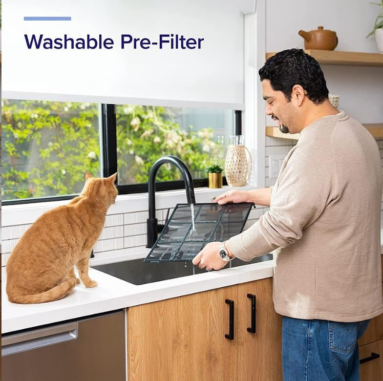 Táto čistička vzduchu je ideálna pre majiteľov domácich miláčikov, pretože jej veľký vstup vzduchu v tvare písmena U pomáha predchádzať upchávaniu srstí, takže filtračný systém môže vždy účinne plniť svoju prácu. Stačí kliknúť na režim Pet Mode v bezplatnej aplikácii VeSync a čistička Vital 200S bude striedavo používať stredné a vysoké otáčky, aby sa znížil zápach a odstránila sa srsť domácich miláčikov. Tým udrží váš domov svieži a energeticky úspornejší. Zároveň sú tie najväčšie nečistoty zachytené na umývateľný predfilter, ktorý jednoducho umyjete a ušetríte opotrebenie filtra a tým aj vašu peňaženku.