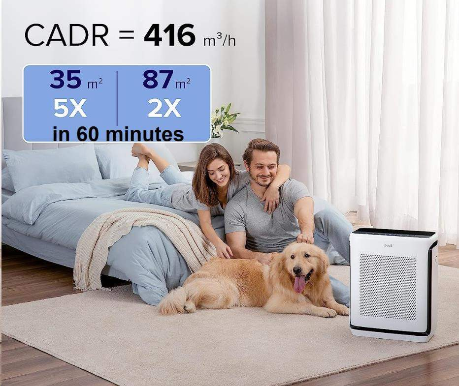 Levoit Vital 200S PRO disponuje výkonom až 416 m3/h CAD a vyčistí dvakrát za hodinu miestnosť o veľkosti až 87 m2 a až päť krát za hodinu miestnosť o veľkosti 35 m2.