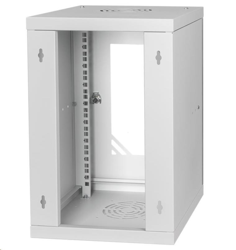 LEXI 10" nástenná skriňa Basic 9U, šírka 292 mm, hĺbka 300 mm, sklenené dvere, bez zadnej steny, sivá