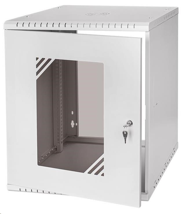 LEXI-Net 19" nástěnný rozvaděč Basic 12U 520x450, skleněné dveře, bez zad, rozložený, šedý