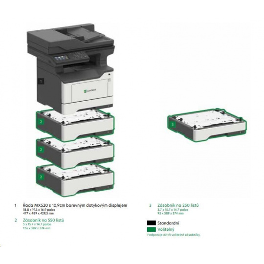 LEXMARK Multifunkčná čiernobiela tlačiareň MX522adhe, A4, 44 strán za minútu, 2048 MB, farebný LCD displej, duplex, DADF, USB 2.0, LAN,