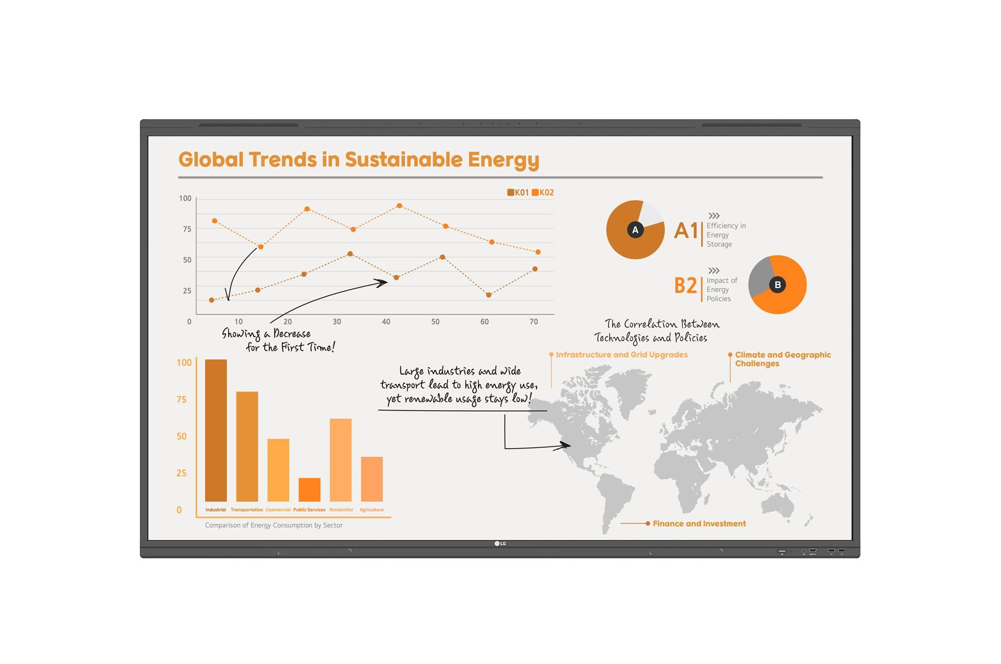 LG CreateBoard Share vytvára plynulé a stabilné prostredie pre zasadaciu miestnosť bez nutnosti ďalších káblov či pripojení. Prezentujúci môžu teraz zdieľať svoje obrazovky bez potreby neustáleho prepájania káblov pri striedaní prezentujúcich. Vďaka možnosti zdieľať až 9 obrazoviek v reálnom čase je možné v prípade potreby zobraziť materiály viacerých osôb súčasne, čím sa zvyšuje efektivita spolupráce.