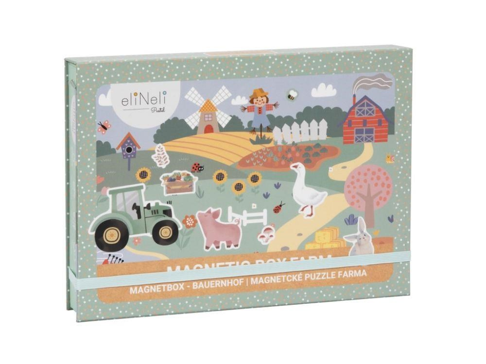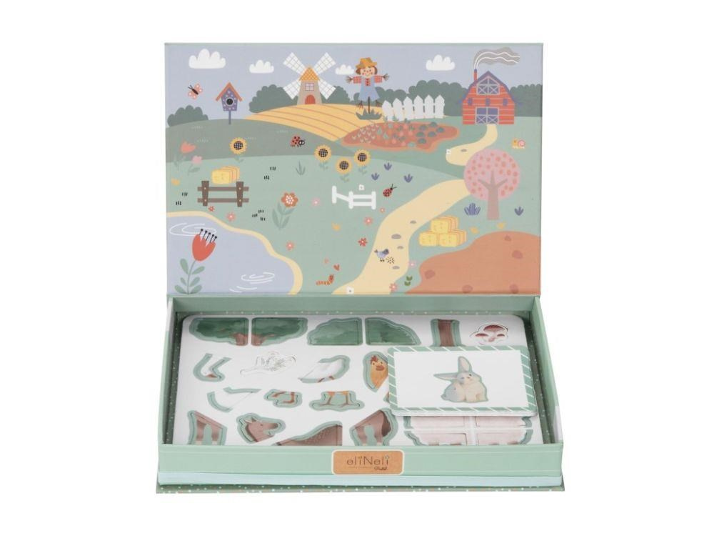 Magnetická hra 2v1 zavedie deti na farmu so zvieratkami, ktoré môžu stretnúť vo svojom okolí, v ich reálnej (skutočnej) podobe. Na magnetickom obrázku s vidieckou krajinou si deti vytvoria vlastnú farmu alebo sa len pohrajú s jednoduchým puzzle. Z jednotlivých dielikov puzzle deti poskladajú traktor, zvieratká alebo podľa priložených kartičiek celé obrázky.
