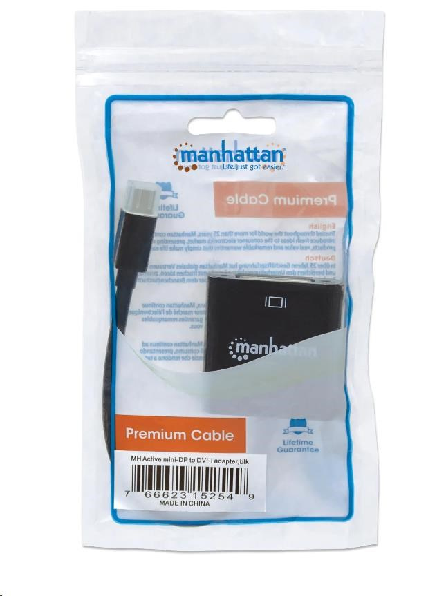 MANHATTAN Adaptér mini DP na DVI-I, aktívny, čierny
