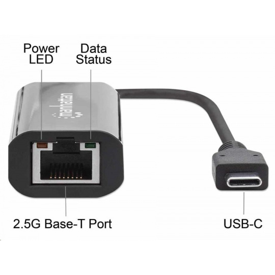 Adaptér Manhattan USB-C na 2.ethernet 5GBASE-T, USB 3.2 Gen 1; 10/100/1000 Mbps & 2.5 Gb/s, čierna