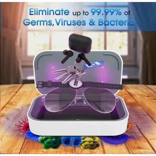 - Dezinfikuje smartfóny, hodinky, kľúče, šperky, kreditné karty, masky, cumlíky, slúchadlá a ďalšie