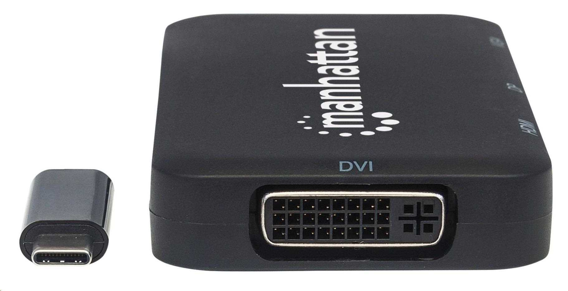 Prevodník Manhattan USB-C 4 v 1 Audio/Video vytvára rýchle, jednoduché a pohodlné prepojenie medzi novšími zdrojmi médií vybavenými rozhraním USB typu C (počítače, tablety, smartfóny atď.) a existujúce displeje HDMI, DisplayPort, VGA alebo DVI (monitory, projektory atď.). Prevodník Manhattan USB-C 4 v 1 Audio/Video sa ľahko a rýchlo inštaluje - nie je potrebná žiadna zložitá konfigurácia ani nastavenie. Vďaka dizajnu "všetko v jednom" sa dosiahlo kompaktné, integrované riešenie, ktoré eliminuje zbytočné káble, spleť a neporiadok, aby boli inštalácie a pracovné priestory čisté a usporiadané. Predĺžte životnosť svojho zariadenia a plne využite investície a hodnotu svojich displejov HDMI, DP, VGA alebo DVI, projektorov a periférnych zariadení pomocou prevodníka Manhattan USB-C 4 v 1 Audio/Video.