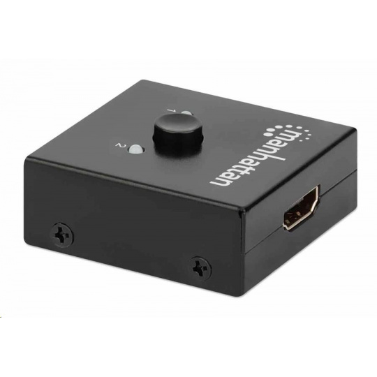 Dvojsmerný 2-portový rozdeľovač HDMI Manhattan 4K so zabudovaným zosilňovačom umožňuje zdieľať signál 4K HDMI z jedného zdroja UHD na jednom z dvoch displejov UHD alebo pripojiť dva zdroje UHD a prepínať medzi nimi na jednom displeji UHD.