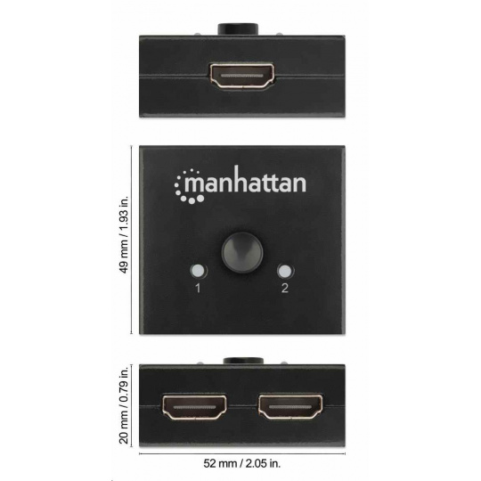 Manhattan HDMI Splitter, 4K obojsmerný 2-portový HDMI Splitter/Prepínač, 4K@30Hz, čierny