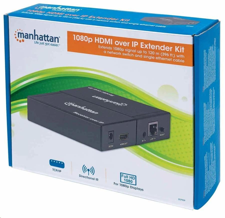 | obsah balenia | 1080p HDMI over IP Extender Splitter Kit (moduly prijímača a vysielača) Napájací adaptér (dve jednotky) IR blaster a prijímač (jedna jednotka) Montážny materiál na stenu (po dve jednotky) Stručný návod na použitie |