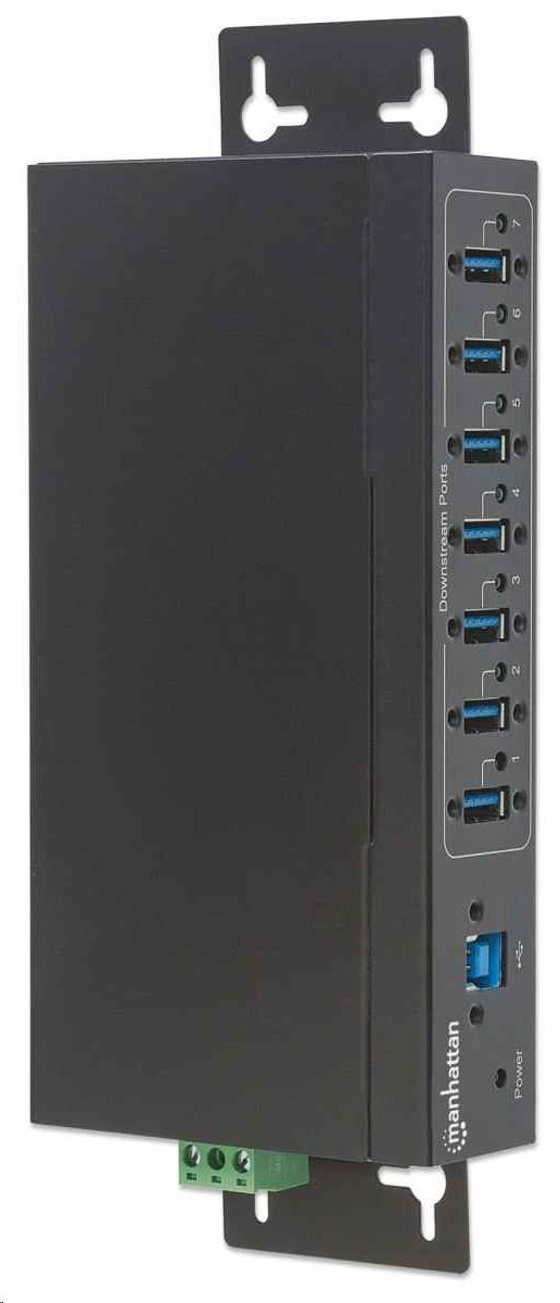 Manhattan 7-portový priemyselný USB 3.0 Rozbočovač ľahko rozšíri a zabezpečí váš prístup k USB v priemyselných prostrediach a oblastiach s vysokou intenzitou prevádzky. Všestranné a robustné možnosti montáže umožňujú rozbočovač pripevniť na stenu, použiť na pracovnom stole alebo pridať na lištu DIN. Tento rozbočovač vytvára viac otvorených bodov pripojenia pre USB 3.0, ako sú externé pevné disky a tlačiarne. Zabudované porty so skrutkovacím zámkom poskytujú bezpečnosť pre káble a dodatočnú stabilitu pred vibráciami v okolitom prostredí. Je spätne kompatibilný s predchádzajúcimi štandardmi USB, aby poskytoval flexibilitu pre pripojené zariadenia. Manhattan 7-portový priemyselný USB 3.0 Rozbočovač ponúka možnosť pripojenia a výmeny za prevádzky a prenos dát rýchlosťou až 5 Gb/s.